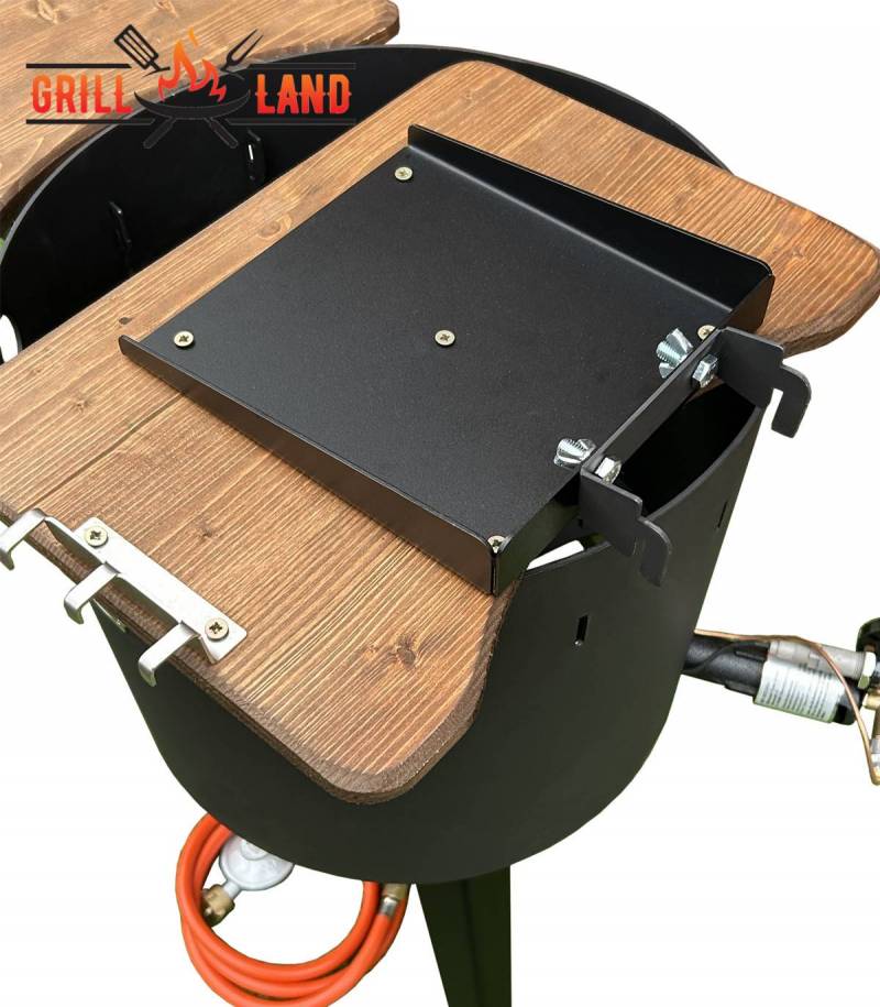 Dank der integrierten Haken hast du wichtige Utensilien jederzeit griffbereit. Die durchdachte Konstruktion vereint Funktionalität, Stabilität und zeitloses Design – ideal für anspruchsvolle Outdoor-Köche.