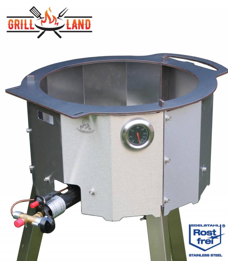 Mithilfe des Adapters (nicht im Lieferungsumfang) ist die Verwendung des Dutch-Ovens, Afghanische Kazans und ähnlichem Kochgeschirr möglich.