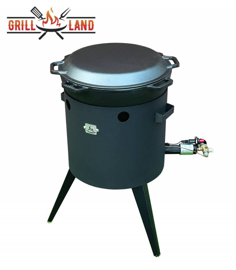 SET Gas-Feuerofen Utschak KOMFORT 37 cm, Stahl 3mm, mit 12 Liter Kazan Gusseisen Robari mit Pfannendeckel aus Gusseisen