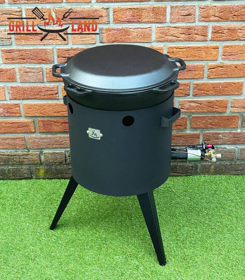 SET Gas-Feuerofen Utschak KOMFORT 37 cm, Stahl 3mm, mit 15 Liter Kazan Gusseisen Robari mit Pfannendeckel aus Gusseisen