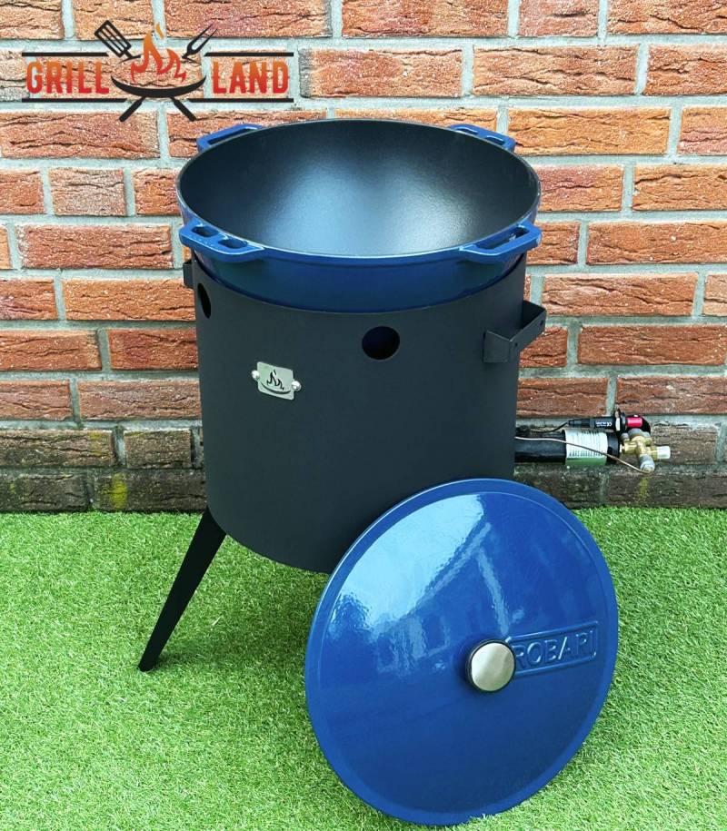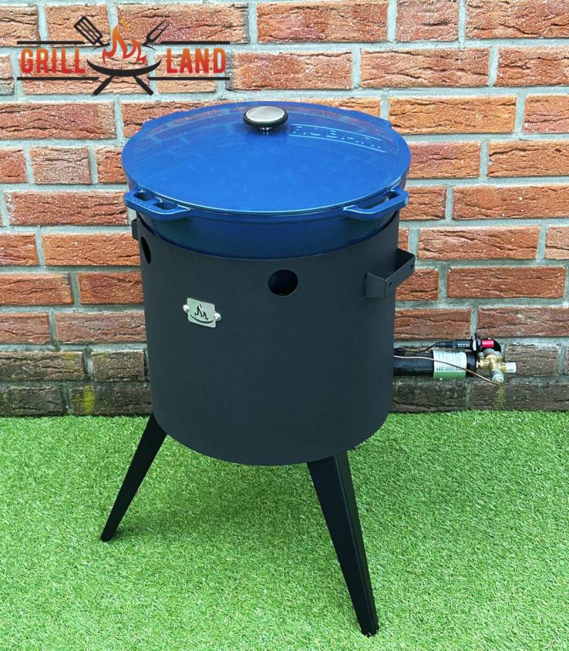 SET Gas-Feuerofen Utschak KOMFORT 37 cm, Stahl 3mm, mit 15L Kazan Gusseisen Robari mit Deckel aus Gusseisen emailliert