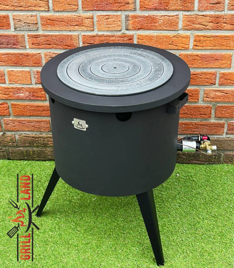SET Gas-Feuerofen Utschak KOMFORT 45 cm, Stahl 3mm, mit Kochplatte Stahl und gusseisernem Ringeinsatz