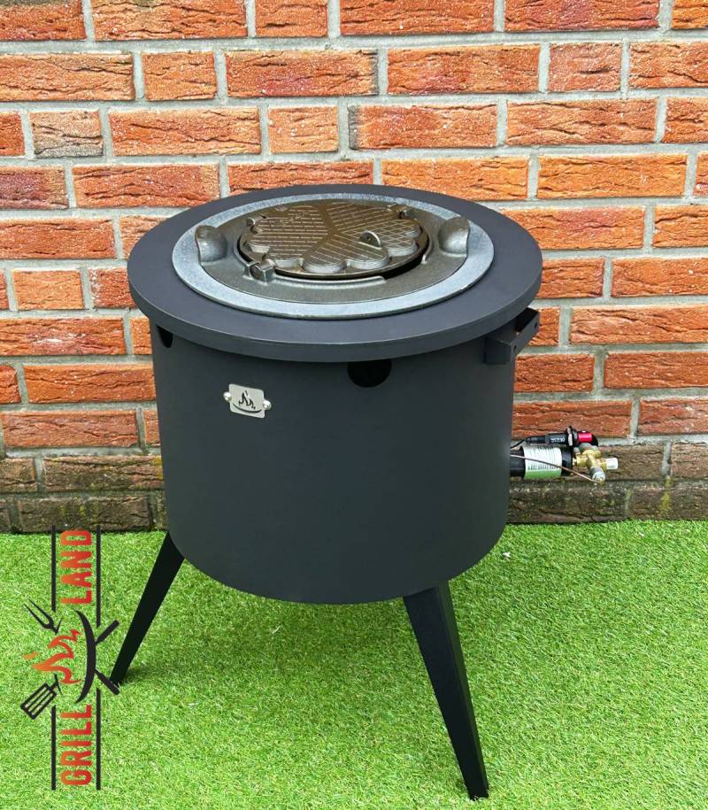 SET Gas-Feuerofen Utschak KOMFORT 45 cm, Stahl 3mm, mit Kochplatte Stahl mit gusseisernem Ringeinsatz und Waffeleisen